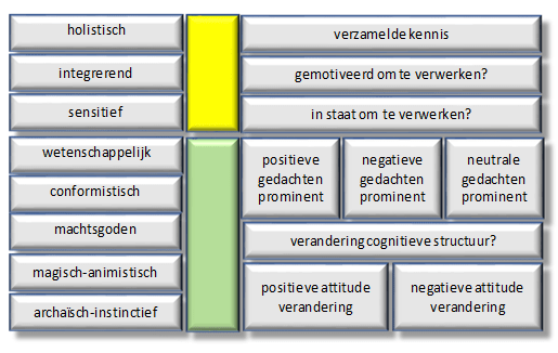 In dit bericht trachten we aan de hand van een praktijkvoorbeeld weer te geven hoe binnen de spiraaldynamiek een tweedeling kan ontstaan, enerzijds de onderhoudsniveaus (groen), anderzijds de zijnsniveaus (geel). Hiernavolgend een ‘vingerwijzing’ naar de chaostheorie, met betrekking tot hoe kleine dingen het wereldbeeld kunnen beïnvloeden. Kanttekening, in algemene zin kan onmogelijk ingeschat worden hoe de ontvanger deze of gene informatie onthaalt. Zijn we reeds vertrouwd met de aangeboden stimuli, of is het volledig nieuw? Verder leest het elaboratieproces in stappen die per individuele appreciatie verschillend kunnen doorlopen worden, of ook helemaal niet.
