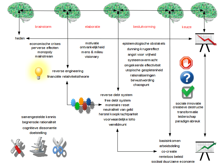 In volledige tegenstelling tot deze bezwarende intro op deze pagina een voorbeeld waarin we de kracht van eenvoud en kleine dingen trachten te accentueren. Merk vooral op, we hoeven geen wetenschappers te zijn om in deze of gene materie interesse te tonen, dit behoort tot de eigenheid van het individu om dit wel/niet te overwegen. In dit specifieke geval zijn we ons de vraag gaan stellen of, anders dan traditionele schuldsanering, een tabula rasa voor het schuldencomplex mogelijk is. Het resultaat kunnen we omzetten in visieschetsen die inzage geven in het verloop, onder het motto een beeld zegt meer dan duizend woorden.