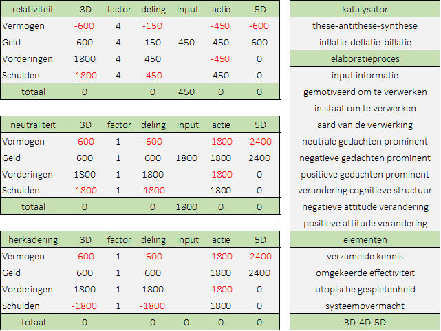 Metadenkend, met als doel een tabula rasa voor het schuldencomplex zien we in onderhavig schema links drie in kwalitatieve zin verschillende methoden om dit te realiseren. Enkel in de eerste versie passen we de non-lineaire katalysator biflatie toe, in relatieve zin wiskundig precies afgestemd. In abstractie, Ockhams scheermes leent zich er perfect toe om te mogen besluiten dat de beschikbaarheid van opties geen restrictie vormt, de beslisbaarheid als tijdloos garanderend. De respons rechts volgens het elaboratieproces dat zichzelf verklaart, aangevuld met een aantal elementen die het discours in deze of gene zin kunnen beïnvloeden.